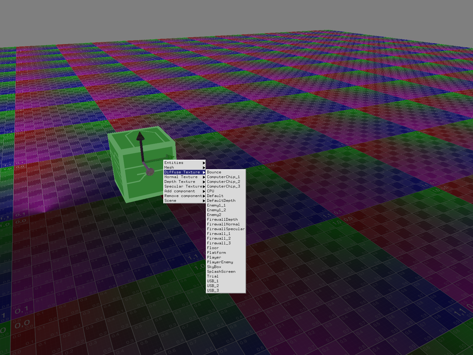 The software is an OpenGL / GLSL game engine which is used to create platforming games. The engine uses a unity style structure which implements entities which take components to create complex objects within the game. For instance a platform could be created which would be an entity then the platform could be given an AI entity allowing the object to move using an AI behaviour. The software contains a main menu, A game developed within the engine and an editor.