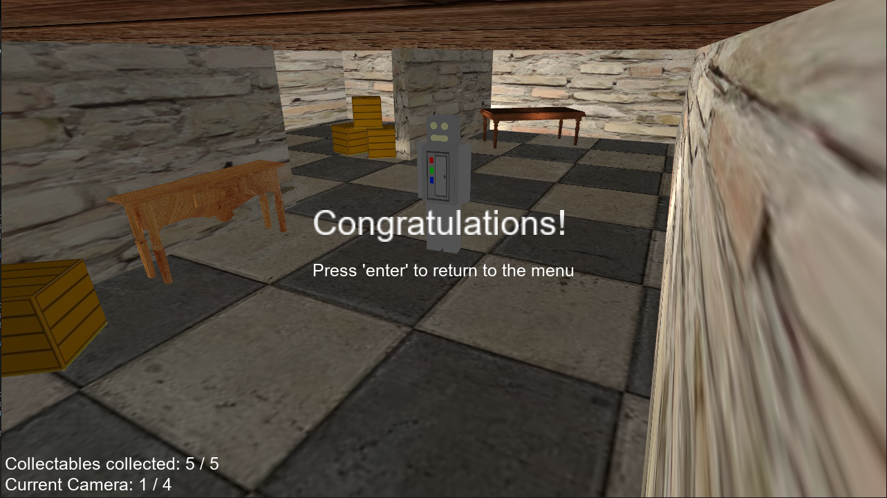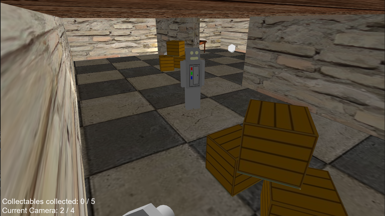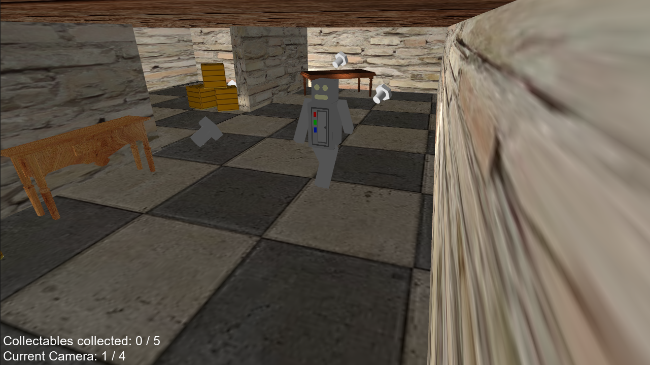The game is an OpenGL / GLSL collectathon game using data driven structures to allow for easy customisation of objects. The software uses derivication to allow objects to be created with different attributes such as being a collectable for instance. This can be edited using an XML file. The software allows objects to be made up of multiple models which give a plethora of possibilities for example the robot in the game can be edited so its head can be made into a table if required.