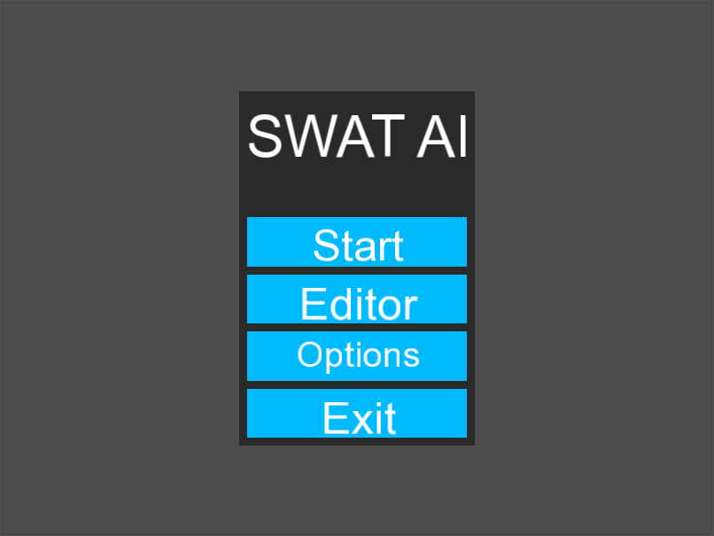SWAT AI was intended to be a genetic algorithm based software which had swat units clearing a user created building of enemy hostiles by repeatedly taking different approaches of attacking the enemies and adapting using the data gathered to get to the best result. The software that I have developed is currently in a state of being ready for genetic AI addition and has all of the additional mechanics which were intended in the base software.